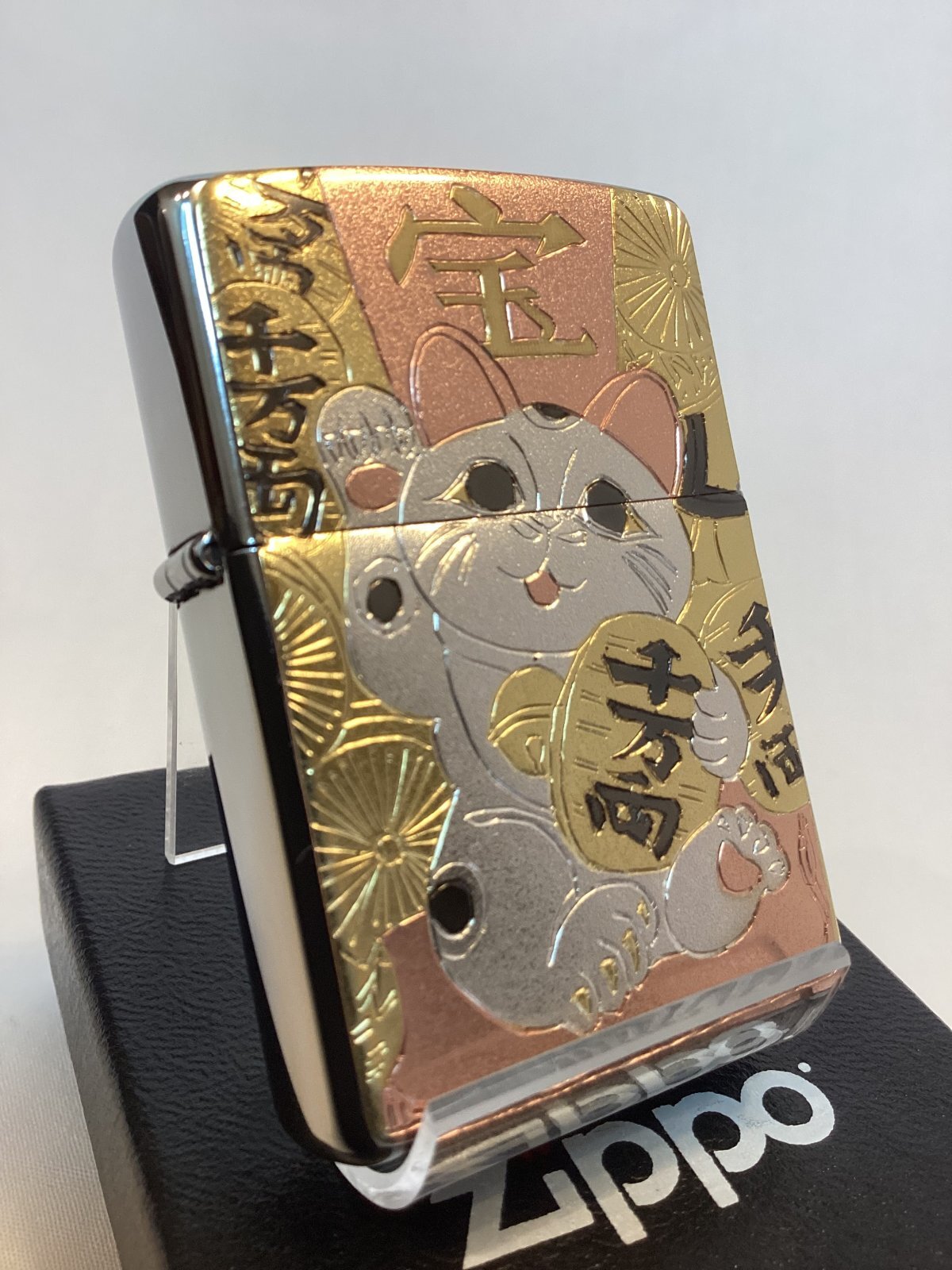 ホーム推奨品(zippo)No.200 推奨品ZIPPO BRUSHED CHROME ブラッシュクローム 電鋳板プレート 招き猫 z-6709