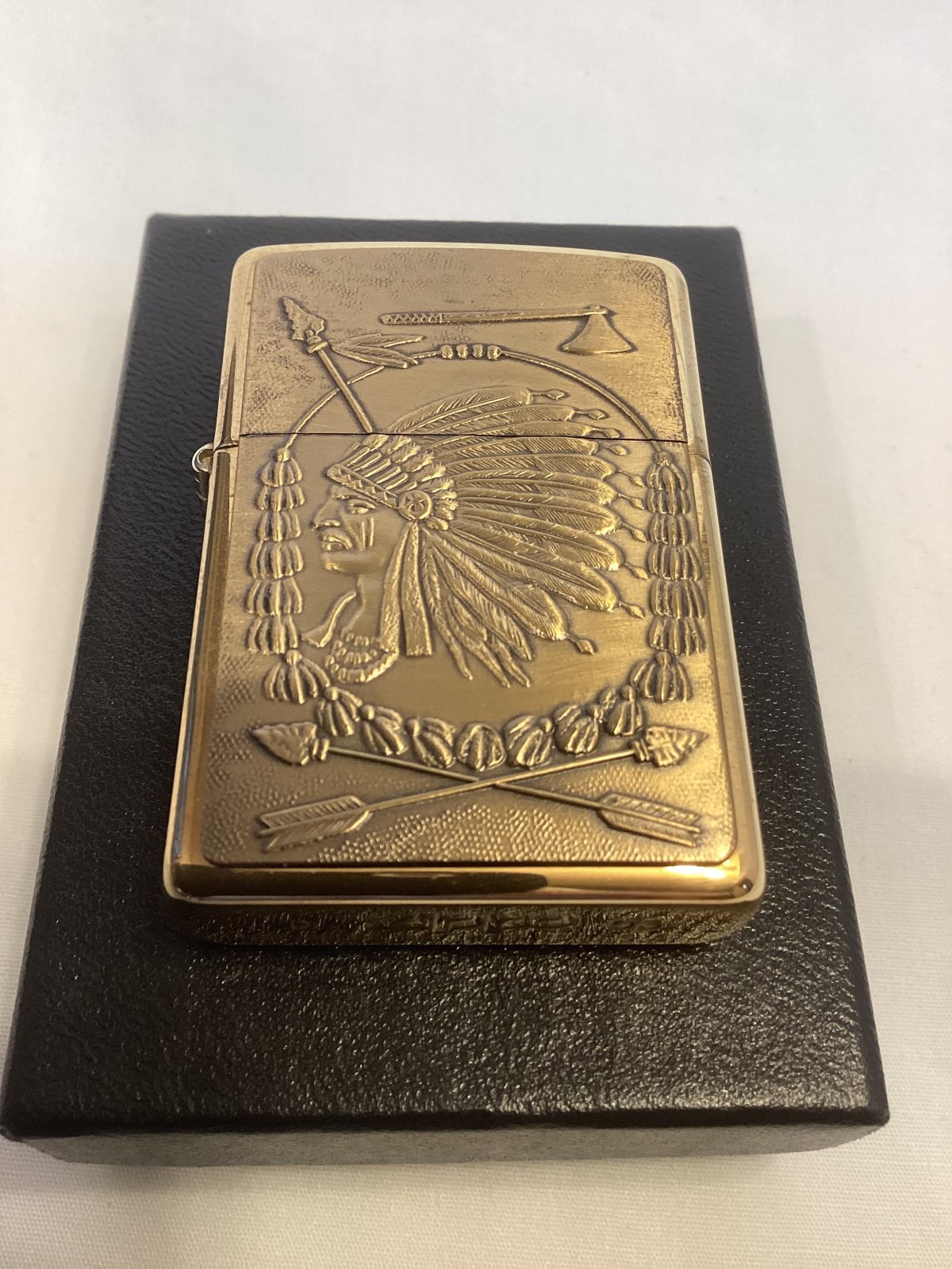 No.254 ヴィンテージZIPPO 2003年製 SOLID BRASS MIRROR ソリッドブラスミラー INDIAN インディアン METAL PLATE メタルプレート z-6731