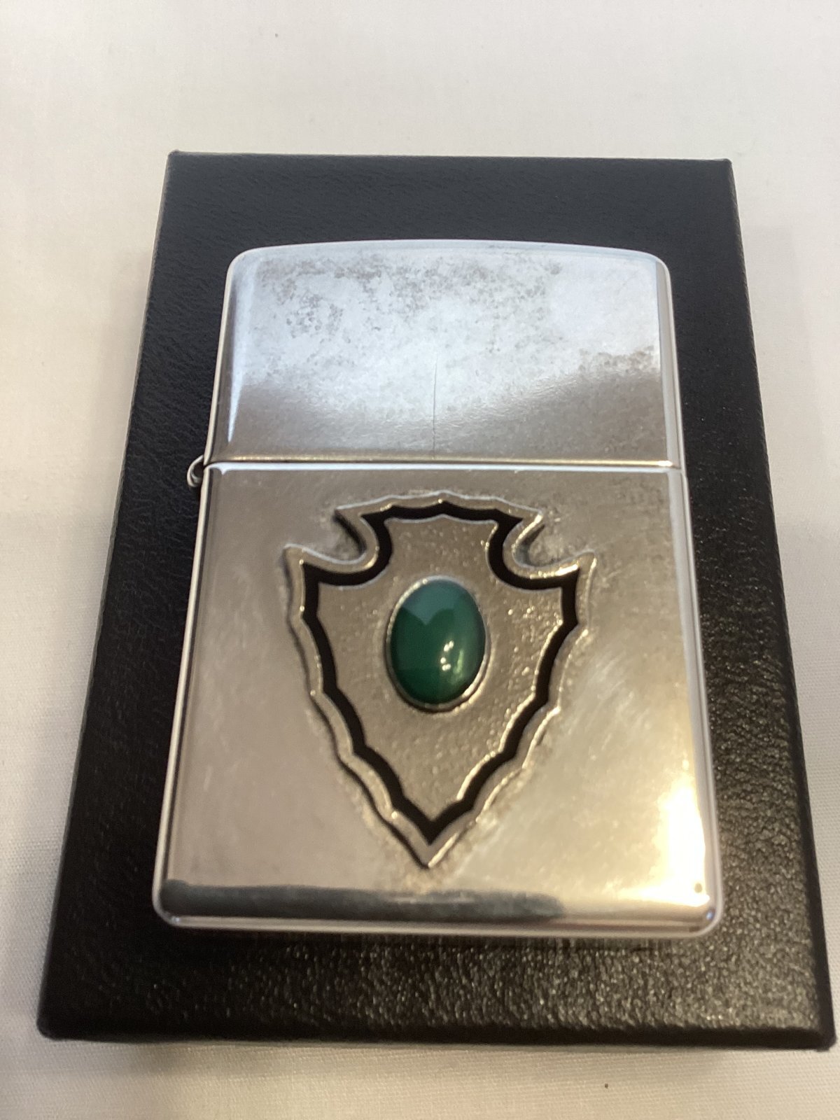 No.200 ANTIQUE SILVER ZIPPO アンティークシルバー AROWHEAD METAL アローヘッドメタル ターコイズ付きです。