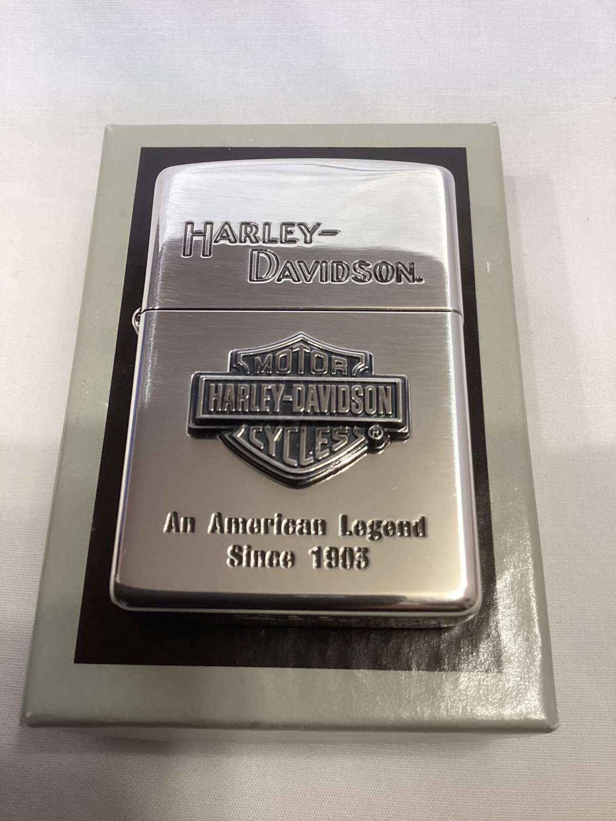 No.200 SILVER MIRROR IBUSHI ZIPPO シルバーミラーイブシ HARLAY DIVIDSON ハーレー・ダビッドソン BAR & SHIELD METAL バー&シールドメタル付きです。