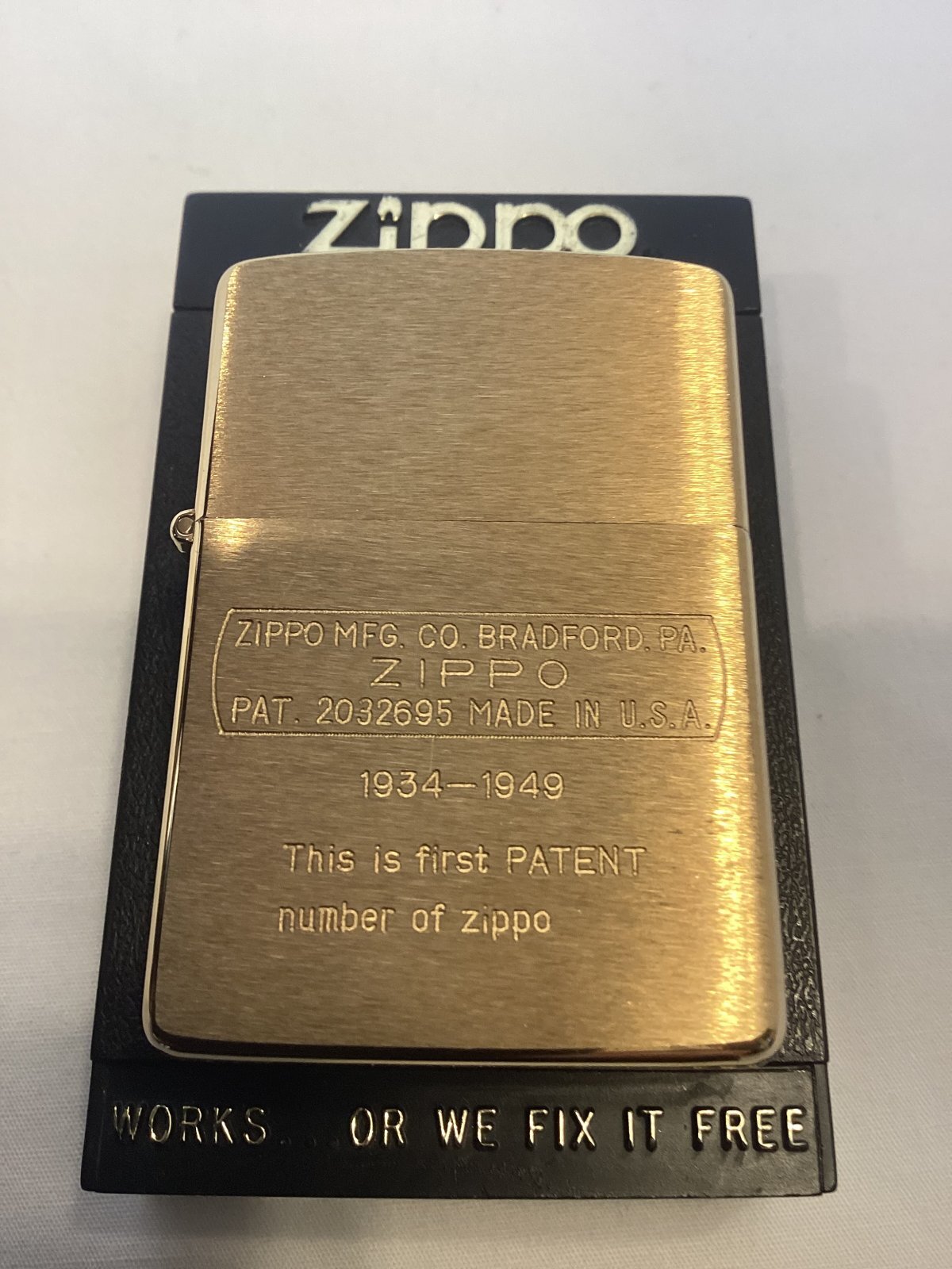 No.204 BRUSHED SOLID BRASS ZIPPO ブラッシュソリッドブラス USパテント申請許可番号♯2032695入りのボトムスタンプデザインです。